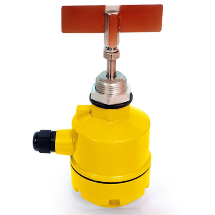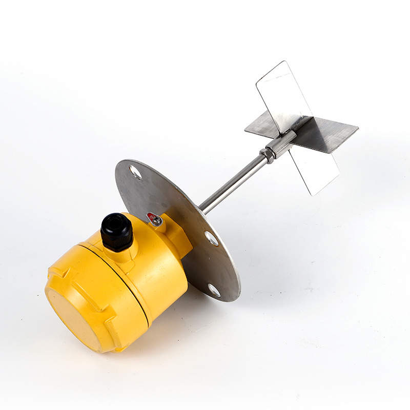 阻旋料位計(jì),工作原理為利用永磁電機(jī)帶動(dòng)葉片旋轉(zhuǎn)的器材。,當(dāng)被檢測(cè)的物料上升葉片位置時(shí),葉片轉(zhuǎn)動(dòng)受阻,將該阻力傳給接線盒內(nèi)的檢測(cè)裝置,檢測(cè)裝置則相外輸出一個(gè)開關(guān)信號(hào),并切斷電源使葉片停止轉(zhuǎn)動(dòng).當(dāng)物料下降時(shí),葉片阻力消失,檢測(cè)裝置便依靠彈簧的拉力恢復(fù)到原始狀態(tài),針對(duì)不同比重的物料可調(diào)整的拉力,比重大時(shí)彈簧的拉力調(diào)整*強(qiáng),反之則調(diào)整弱.阻旋料位開關(guān)是一種與固態(tài)物料包括粉狀、粒狀、膠狀等物位控制器件;它具有密封好、過載能力強(qiáng)、輕便易裝、輸出接點(diǎn)容量大等特點(diǎn)。針對(duì)不同的比重物料可通過調(diào)整彈簧的拉力來實(shí)現(xiàn)、其接觸物料部分全為不銹鋼材質(zhì);阻旋開關(guān)通常在化工、塑料、水泥、制藥、飼料、食品等等行業(yè)中得dao廣泛使用。